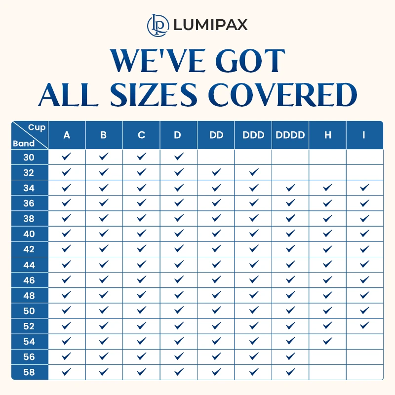 From Cup AA to I! Our top lingerie designer's meticulous size chart, combined with our flexible fabric, promises the fit you desire.